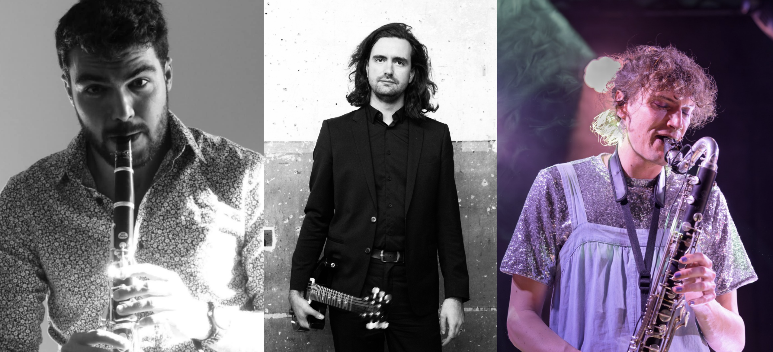 Installé dans l’esthétique du jazz de chambre, « Merlin et les Maîtres de l’Air » est un trio atypique composé deux clarinettistes et d’un guitariste qui plane entre swing, gestes musicaux, humour et douceur, dans une musique composée essentiellement par les membres du groupe. La légèreté du souffle d’une clarinette en Sib, immédiatement contrastée par les bourrasques intempestives d’une clarinette basse, justifie le nom évocateur de ce projet fondé à Lausanne en 2021. Oscillant entre swing décoiffant, contrepoints audacieux et rythmes orageux, ce groupe semble défier les possibilités d’un trio à la formation si surprenante. Après une escale pour enregistrer leur premier album « Turbulences » en mars 2022, « Merlin et les Maîtres de l’Air » est maintenant fin prêt à embarquer son public à destination d’un jazz aussi surprenant qu’affectueux.